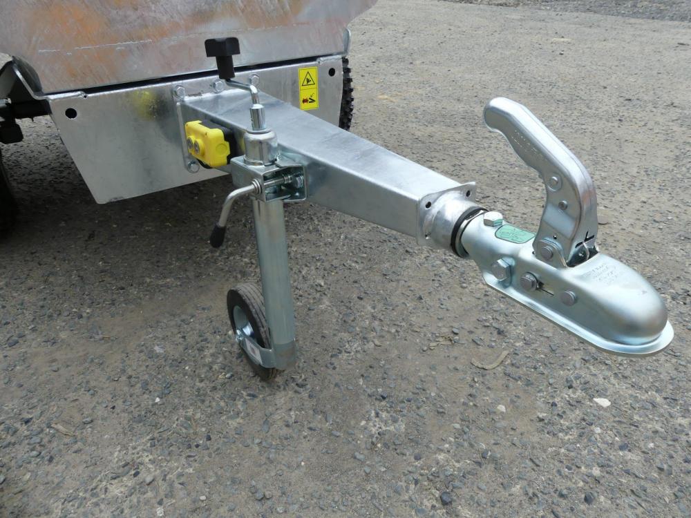 A unique automatic latch/unlatch system is installed in the rear tailgate alongside a large 50° tipping angle for hassle free emptying. The DT100 is installed with an electric operated hydraulic system, complete with wired hand remote that attaches to the back of your ATV, UTV of 4×4 and on-board battery for the ultimate convivence.