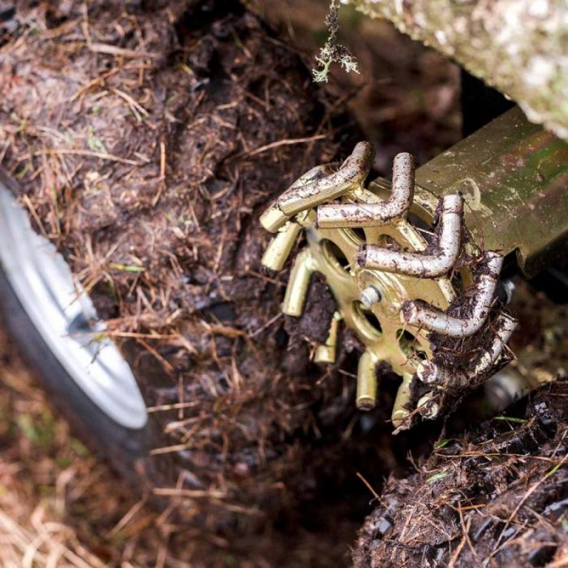 Kellfri’s forestry trailer for ATVs with 4.2 metre hydraulic crane with extension boom for longer reach and own hydraulic system is a real powerhouse. The forestry trailer has wheel drive via rollers on the well-treaded tyres. The wheel drive substantially increases accessibility and makes it easier to get around in the forest and past difficult areas.