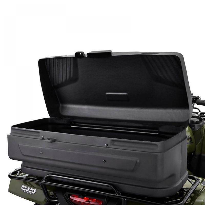 ATV Rack Navigator Storage Box has roto-molded construction with snap closure & rear hinged lid won't warp/dent, even under extreme temperatures.