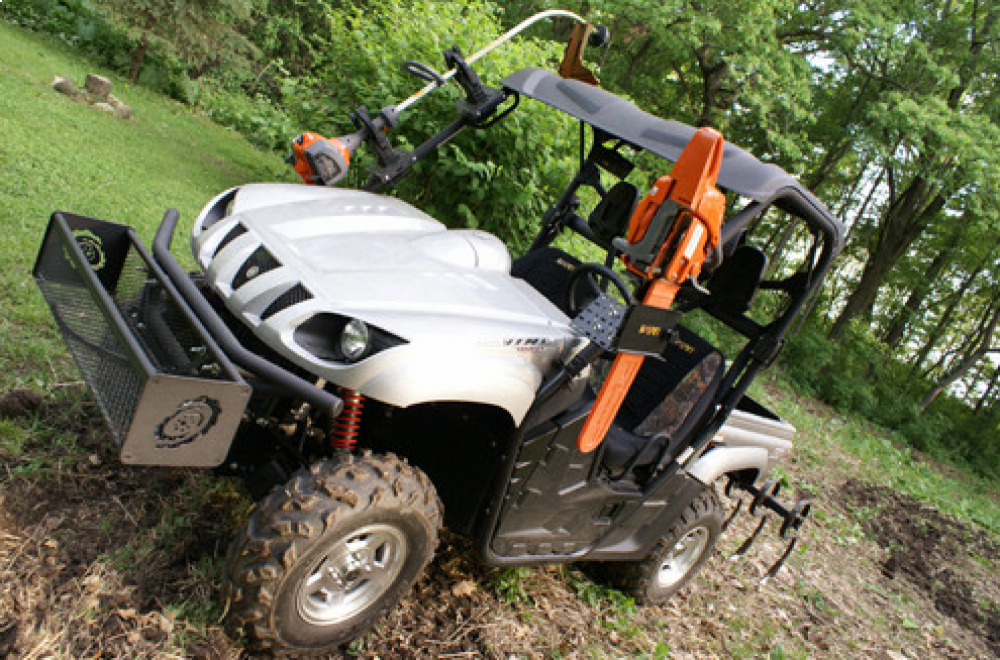 A universal bracket to securely & safely transport a chainsaw on most ATVs, UTVs and trailers. Designed for quick saw removal to get the job done & get you back to riding.
