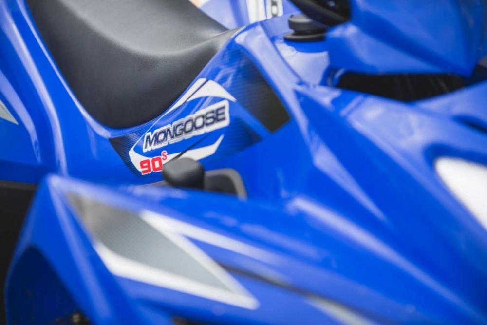 Ready to tackle the wildest adventures, KYMCO Mongoose 90 has everything your future star needs to have fun and stay safe. Single a-arm front suspension and unit-swing rear suspension provides stable handling while the 89.9cc four-stroke engine offers reliable power. Safety conscious features like a throttle stop, ignition cut off lanyard, and keyed electric start will help keep the fun under control. With KYMCO Mongoose 90 your future star will be ready to tackle any adventure they can find. Designed for the youth rider. The ergonomic seat provides riders with the ease to move and shift around on the vehicle or get a better grip.
