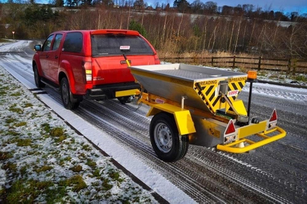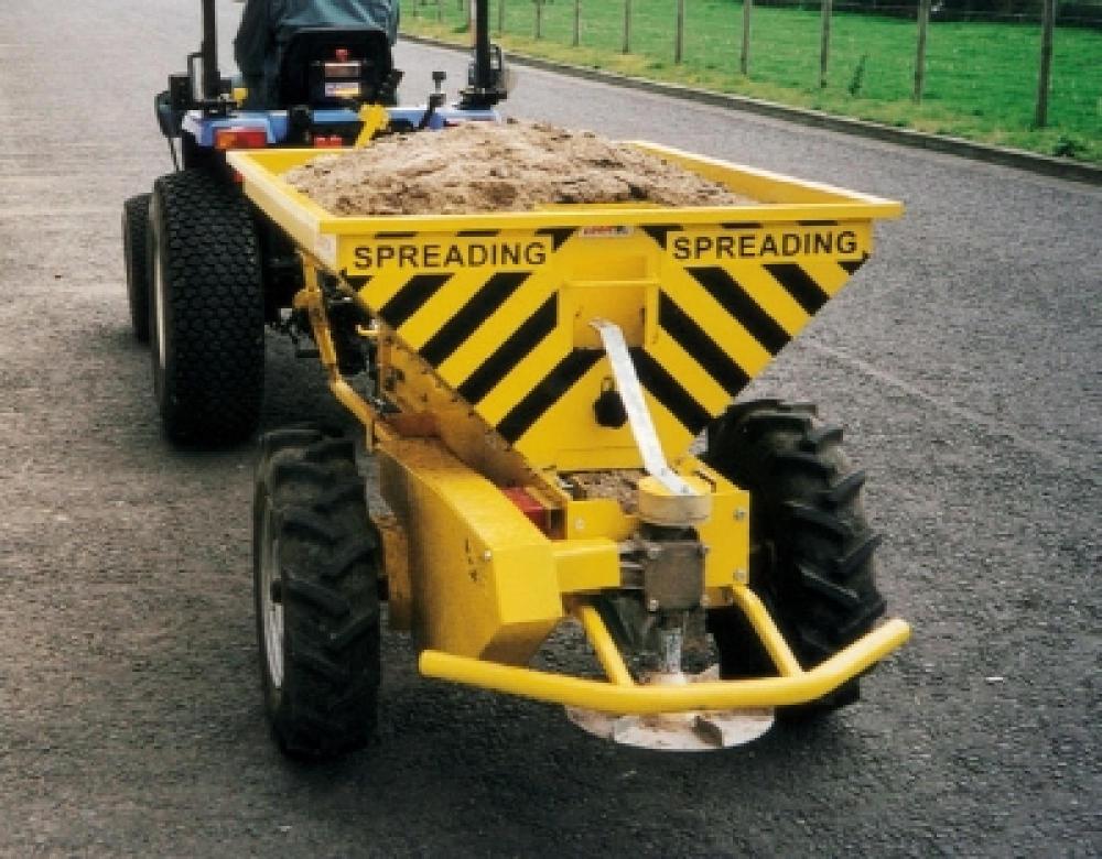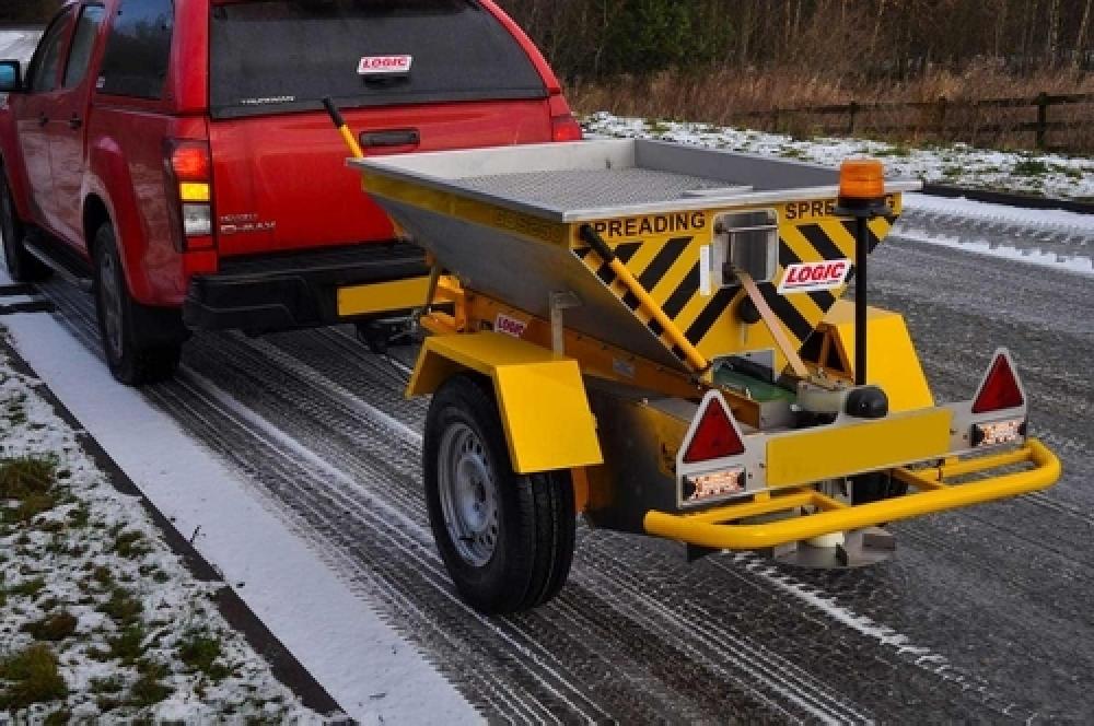 The Logic GDS Salt Spreader is a ground drive spreader used to spread road salt in UK winter conditions. It uses a moving-floor conveyor system similar to highway sized salt spreaders to convey the salt to the spinning disc system. It is a ground drive unit and will hold 465 litres (approx. half a tonne) of salt, providing useful capacity. The GDS range is capable of spreading all types of material including wet rock salt, grit and sand. A unique agitation system and conveyor floor ensures wet or dry material can be spread effectively and accurately by a spinning disc. Working speeds of up to 15mph and road speeds between sites of up to 30mph mean wide areas can be covered quickly and efficiently. Suitable towing vehicles include tractors, 4x4 vehicles and pick-ups. It is built to withstand the harsh conditions which occur when using road salt. The corrosive effects of road salt can quickly bring equipment to a premature halt unless it has been designed to cope. It is very quick to deploy at the first signs of bad weather and for winter gritting jobs it dramatically reduces the time needed to complete the task, when compared to the manual alternative of spreading salt or grit using shovels. If you require a powered version, please see the PDS model. Standard Features 465 litre hopper capacity Unique agitation system Floor conveyor system 1.5 - 10m spread width (standard gearbox) 3 - 14m spread width (high-speed gearbox) Can cast salt to left or right Easy to adjust sluice gate regulates flow Strong construction - built to last Zinc base coat plus two-pack enamel paint finish Handles rock salt even when wet 50mm swivel tow hitch Options Stainless steel hopper/peripherals Road legal version (optional beacon available) Tonneau cover Flotation wheels Clevis or ring hitch options This price is for the standard speed gearbox model with the painted steel hopper, non road legal.For the road legal version with mud guards, road wheels & tyres and lighting GDS250R, the price is £7845.00 + VAT For more prices on different options, please do not hesitate to get in contact.