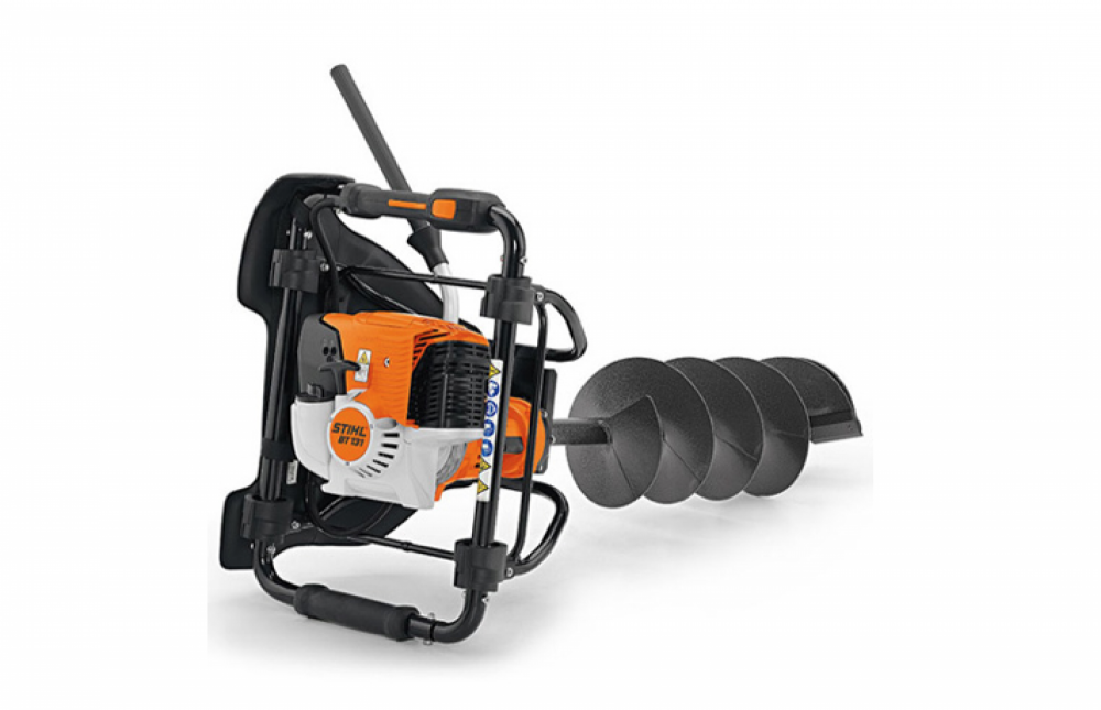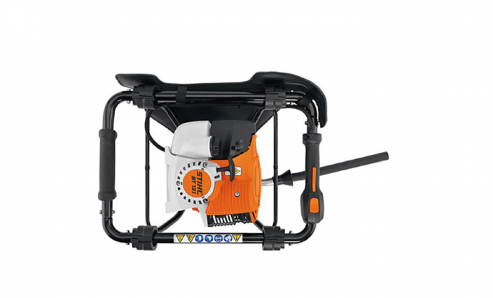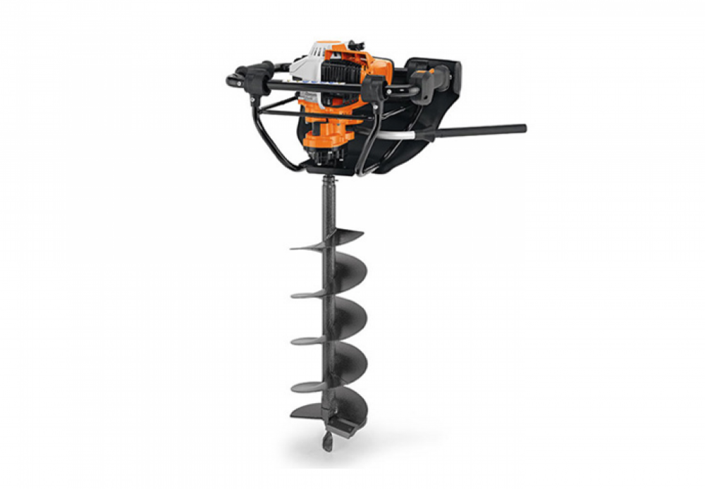 One-man earth auger with QuickStop drill break. 4-MIX® engine with enlarged fuel tank, low-vibration handle frame, control handle with stop button, long-life air filter system, large support cushion.